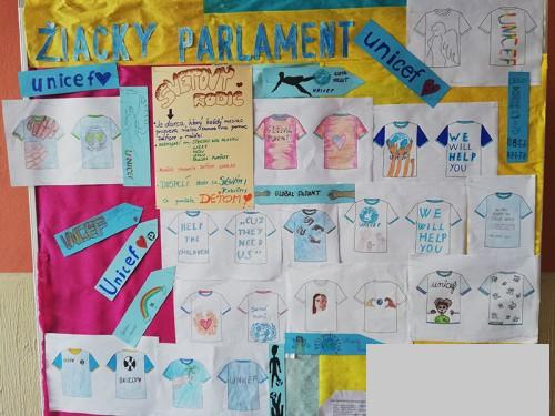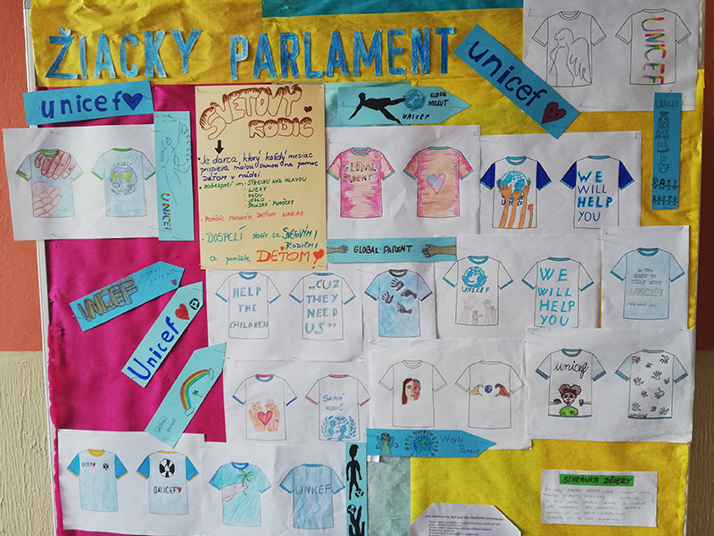 Školský žiacky parlament na našej škole nezaháľal ani v tomto školskom roku. Absolvovali sme vzdelávacie aktivity na tému: Chcem pomáhať a šport v pomoci. Svetový rodič. Po vyplnení Potvrdenia o absolvovaní vzdelávacej aktivity nasledoval ďalší krok: Fundraisingová aktivita, my sme sa zapojili do tvorby dizajnov tričiek na propagáciu Svetového rodiča – urobili sme vyše stovky návrhov a všetky sú veľmi pekné. Do návrhov sme zakomponovali názov Svetový rodič, alebo Staň sa Svetovým rodičom, vyrobili sme množstvo záložiek s touto tematikou. Záverečným krokom bolo vyplnenie evaluačného dotazníka a po jeho úspešnom absolvovaní sa môžeme hrdo pochváliť, že sa nám titul podarilo získať. Svedčia o tom aj slová, ktoré nám priamo z Unicefu napísal koordinátor pre školy: „Na našej spoločnej ceste sme sa tento školský rok dostali až k jej samotnému koncu. Bol to rok strastiplný, avšak spoločnými silami sme sa dokázali súčasnej dobe prispôsobiť a preto nás veľmi teší, že aj napriek všetkým prekážkam, ktoré nám pandemická situácia do našich životov priniesla, Ste na program Škola priateľská k deťom nezanevreli, ba naopak, splnili ste si všetky podmienky a tým Ste získali titul Škola priateľská k deťom 2020/2021. Dovoľte mi Vám teda v mene celého tímu Slovenskej nadácie pre UNICEF srdečne zablahoželať k získaniu titulu a zároveň sa Vám poďakovať za úžasnú spoluprácu a za to, že robíte náš spoločný svet krajším a hodnotnejším. Pevne veríme, že týmto školským rokom sa naša spolupráca nekončí a že v nej v rámci programu Škola priateľská k deťom budeme aj v nasledujúcom školskom roku pokračovať. „ BLAHOŽELÁME A ĎAKUJEME! Samozrejme v našej spolupráci s UNICEFOM budeme pokračovať aj v nasledujúcom školskom roku a budeme sa snažiť prispieť k tomu, aby bol náš svet krajší.