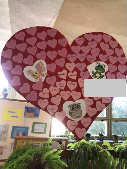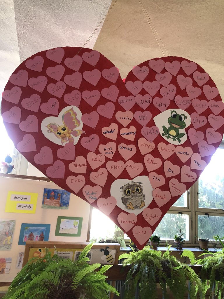 Sviatok svätého Valentína ľudia naprieč krajinami chápu ako sviatok lásky a zamilovaných, ktorý oslavujú 14.februára. Valentín v našom školskom klube detí sme si pripomenuli formou ružových srdiečok so svojimi menami, ktoré sme pripevnili na jedno veľké spoločné srdce, pretože sme jedna veľká rodina. Niektoré oddelenia si sviatok sv. Valentína pripomenuli aj formou rozhovoru a valentínkami pre našich najbližších. Atmosféra bola príjemná a deťom sa táto spoločná aktivita veľmi páčila.