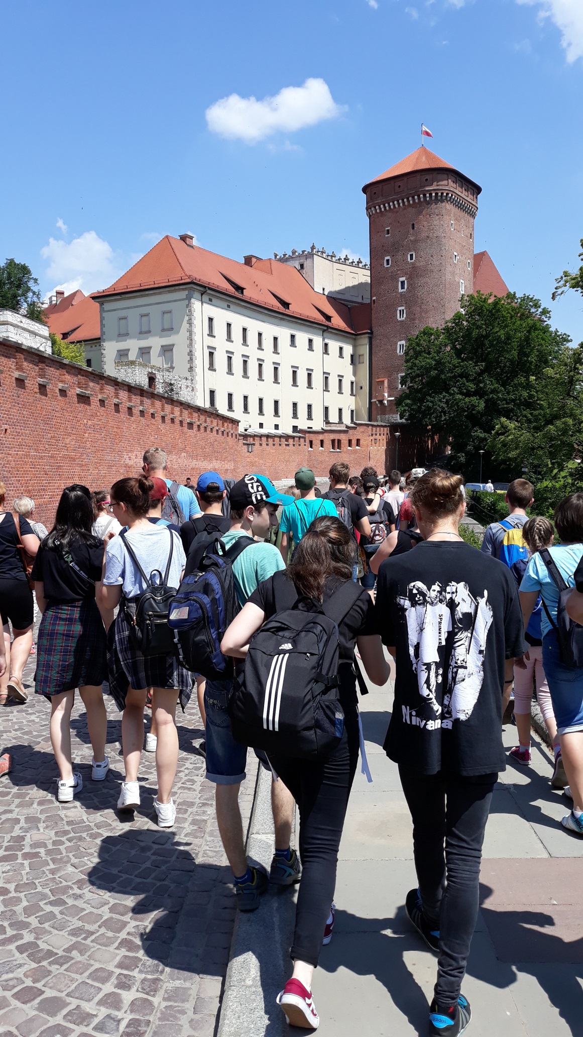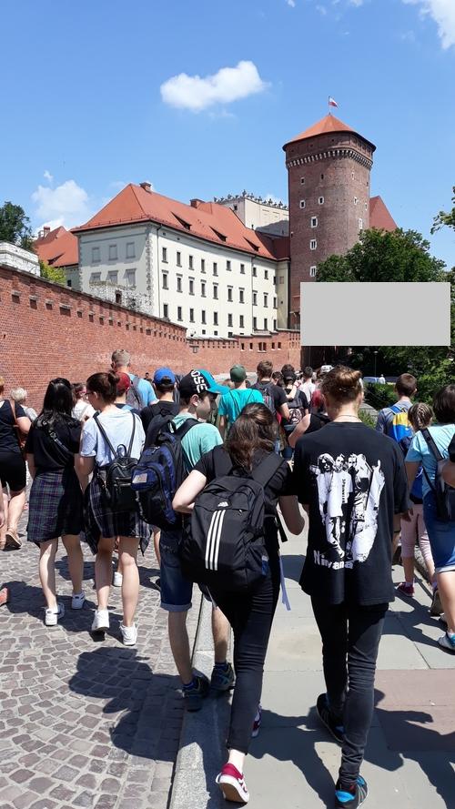 Na 2. deň hneď po raňajkách sme s plnými batohmi a novým elánom nasadli do autobusu a presunuli sa do niekdajšieho hlavného mesta Poľska – Krakova. Ako prvé sa nám naskytol pohľad na pokojný tok rieky Visly, pri ktorej nás už čakala naša sprievodkyňa. Previedla nás starobylými uličkami tohto kráľovského mesta, veľkolepými námestiami, ktoré boli plné historických budov, majestátnych kostolov, domov. Prezreli sme si židovskú štvrť Kazimierz, ktorú tvoria krátke ulice s nízkymi domami, na ktorých sa nachádzajú tabuľky s menami židovských obchodníkov. Miesto preslávil aj film Schindlerov zoznam. Videli sme najstarší židovský cintorín i krakovskú Starú synagógu. Zaujalo nás Hlavné námestie (Rynok Glowny) – jedno z najväčších stredovekých námestí v strednej Európe s unikátnymi gotickými, renesančnými a barokovými budovami, dominantným Mariánskym kostolom (symbol poľskej architektúry), stredovekou tržnicou /Sukiennica/ i známou Jagelonskou univerzitou. Po prehliadke sme mali rozchod v centre mesta, ktorý sme využili na obed alebo nákup krásnych suvenírov. Doteraz nemôžeme zabudnúť na úžasnú atmosféru mesta a nezabudnuteľnú vôňu „praclíkov“, ktorú bolo cítiť na každom kroku.