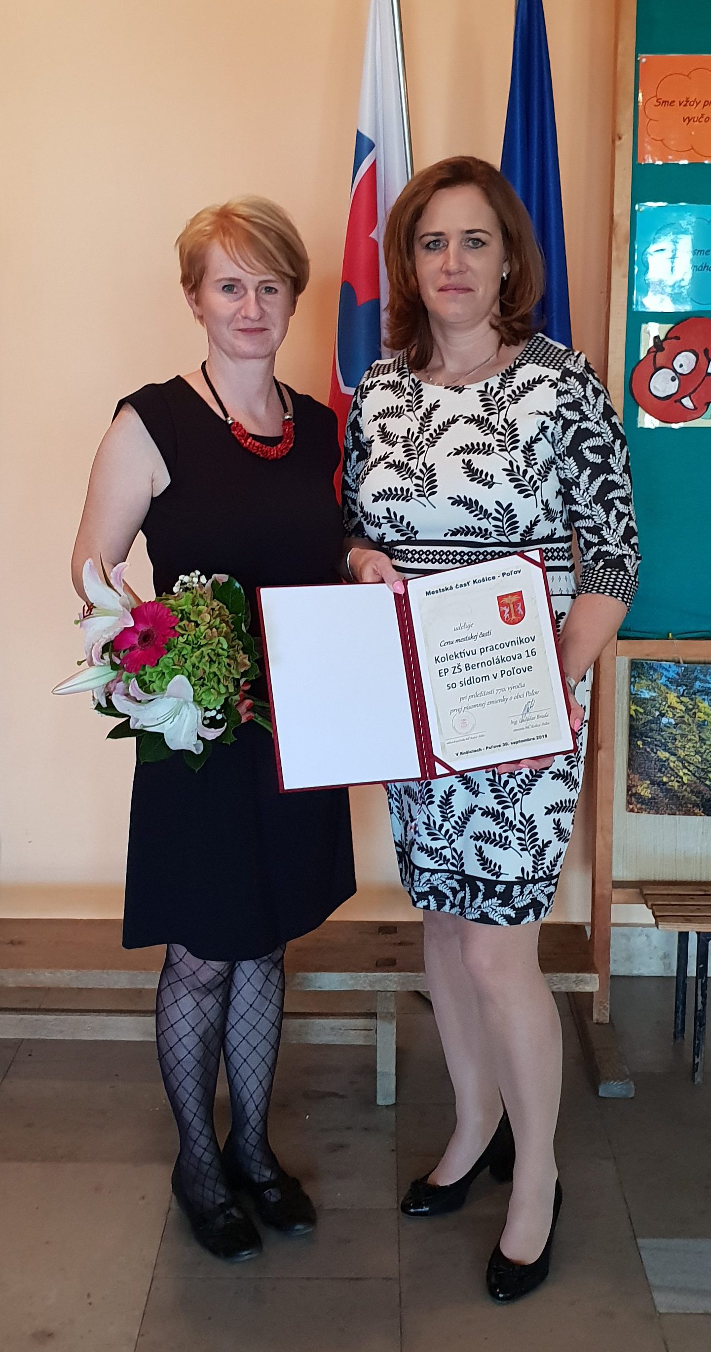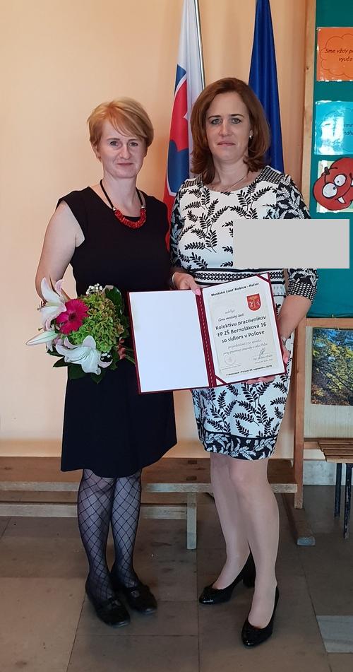 Ocenenie prevzali riaditeľka ZŠ Bernolákova 16, Košice PaedDr. Mária Blanárová a Bc. Lenka Albrechtová.