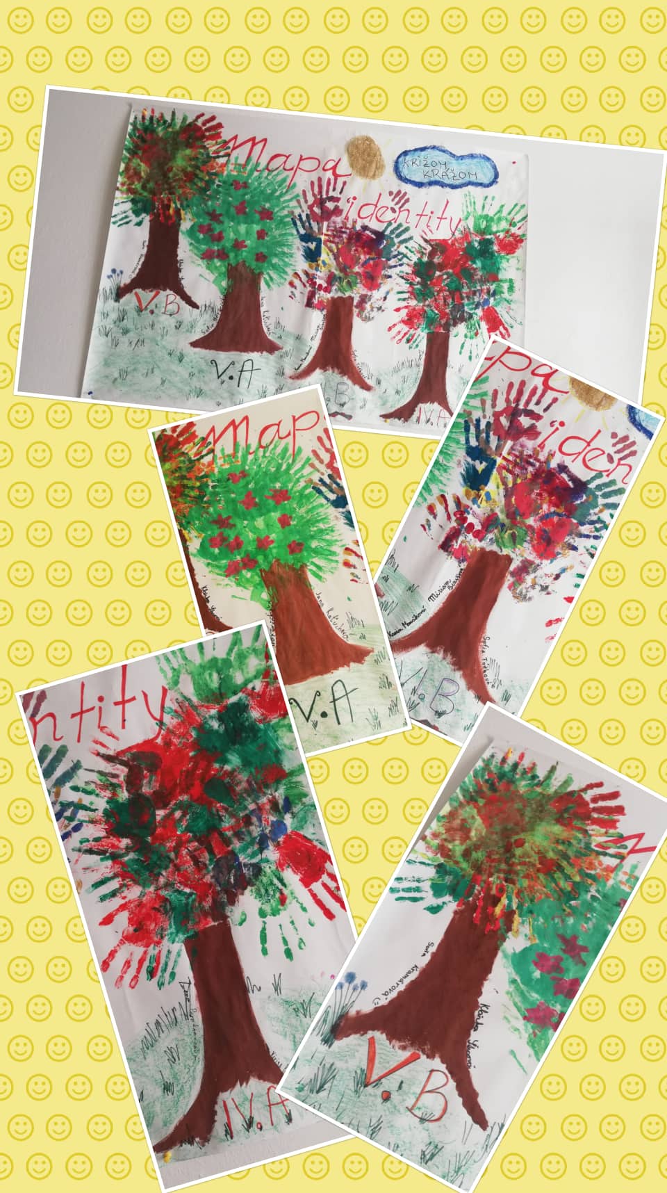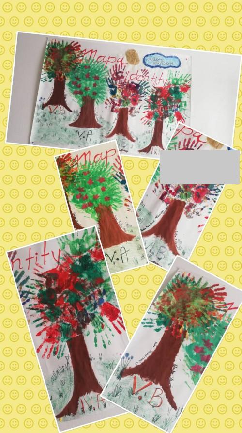 Výsledkom ich kolektívnej práce bola mapa identity, ktorú žiaci vytvorili v podobe stromu pomocou farebných odtlačkov svojich dlaní.