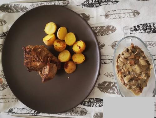 • 9. Panenku nakoniec nakrájame na hrubšie plátky, a podávame so šampiňónovou omáčkou a opekanými zemiakmi.