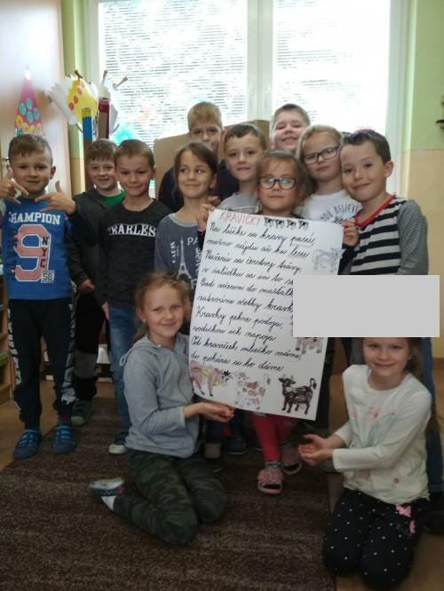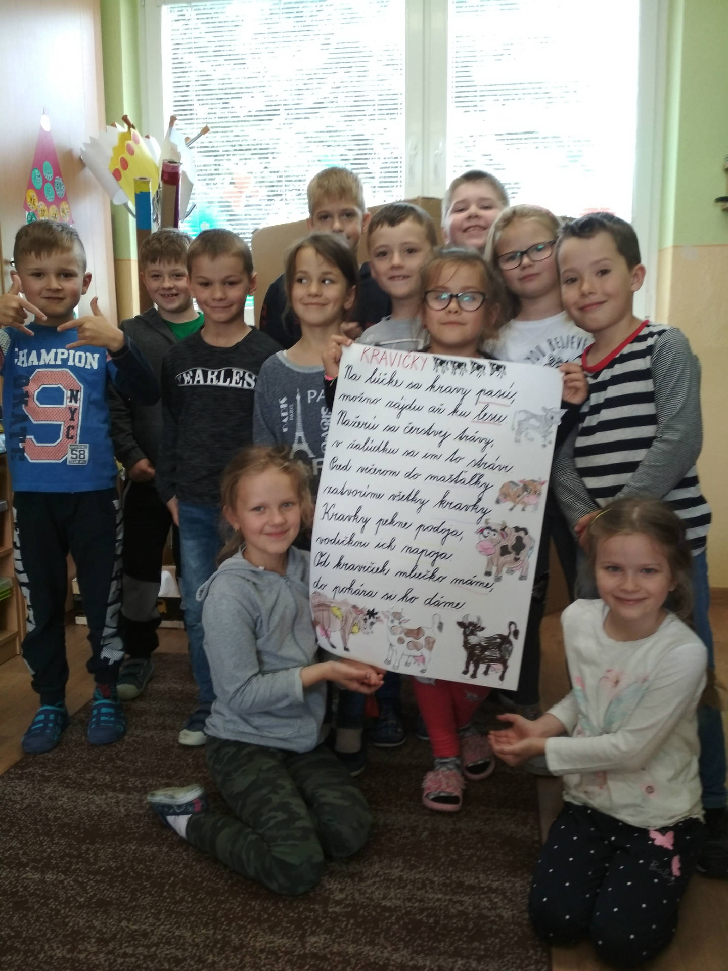 Žiaci 1.B vymysleli krásnu báseň ku dňu mlieka. Tvorenie básne by sa nezaobišlo bez ich pani učiteľky Anny Minárikovej.
