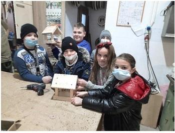 Boli sme v dvoch skupinách. Jedna skupina robila kŕmidlo s tatom Mareka a druhá s jeho pomocníkom Mišom.