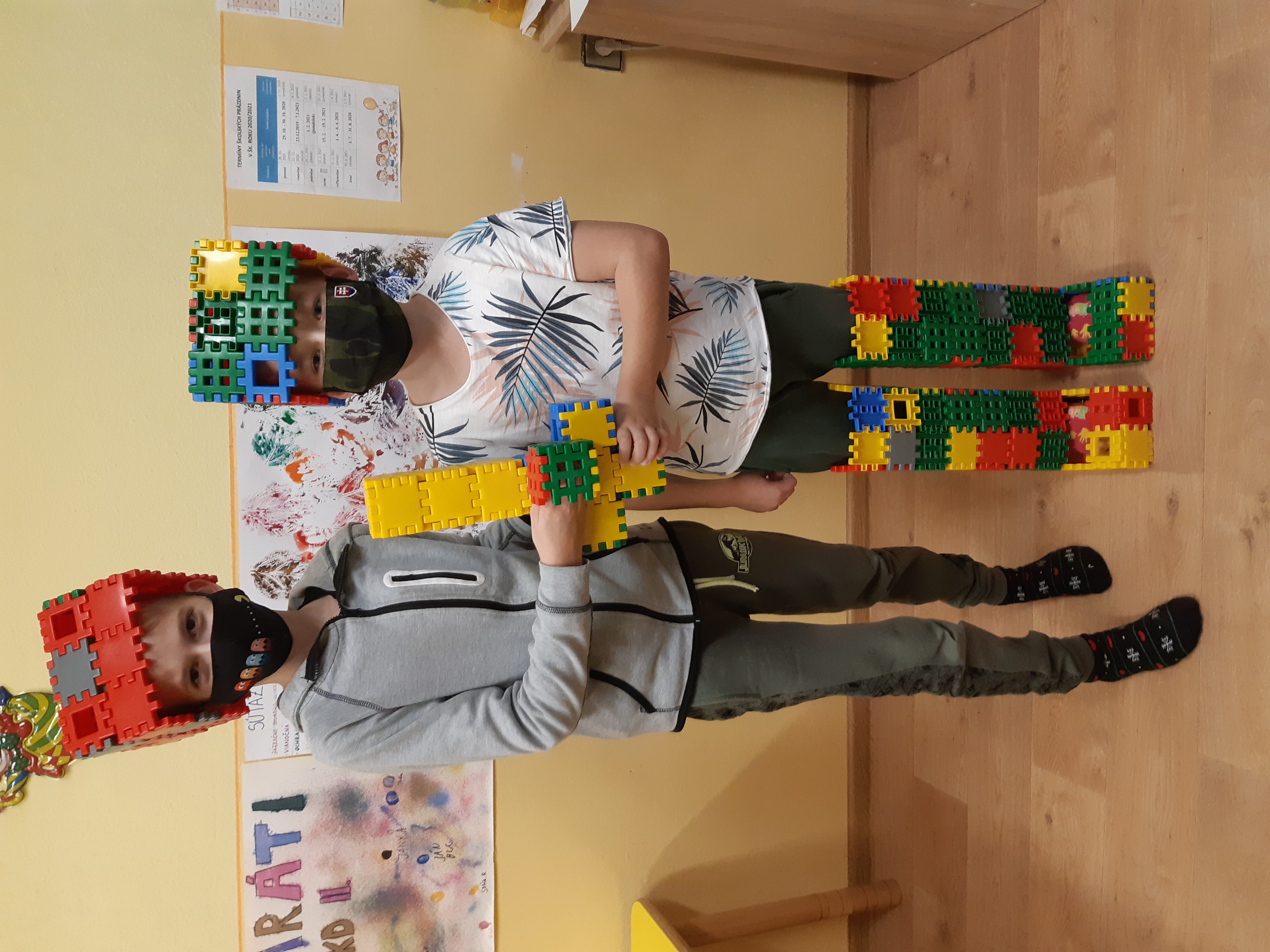 Volám sa Peťko. Mám rád skladačky, ale aj počítačovú hru Minecraft, v ktorej sú rôzne postavičky. Veľmi som chcel byť bojovníkom. V ŠKD som si poskladal svoje nové oblečenie. Čo myslíte, môže byť?