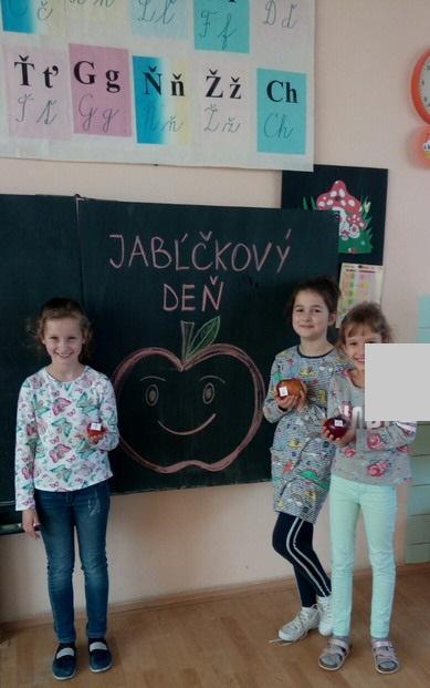 Dňa 23. októbra sme zažili zaujímavý deň. V našej 3. B. triede už ráno plné očakávaní sa začalo perfektne. Na prvej hodine nám pani učiteľka porozprávala zaujímavé informácie o jablku. Neskôr sme si vytiahli jablká, ktoré sme si mali priniesť a začali sa prípravy na výstavku jabĺk a na súťaž o najkrajšie jablko. Zaspievali sme si pieseň o červenom jabĺčku, odpovedali na jabĺčkový kvíz, vyriešili jabĺčkové úlohy a vymýšľali básničky o jabĺčku. Na poslednej hodine sme ochutnávali ich sladkú chuť. A prečo práve jabĺčkový deň? Preto, aby sme si všetci uvedomili aké sú jablká zdravé. Obsahujú veľa vitamínov a posilňujú imunitu a zdravie všetkých ľudí. Sme radi, že nám pani učiteľka urobila takýto pekný jabĺčkový deň. Dozvedeli sme sa veľa dôležitých a zaujímavých informácií o našich úžasných jablkách a taktiež si zamaškrtili.