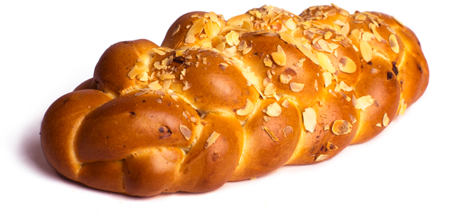 3. Cesto vo forme necháme podkysnúť asi 10 minút. Povrch vianočky potrieme žĺtkom a posypeme mandľami. Pečieme vo vyhriatej rúre pri teplote 180 stupňov asi 20 minút, potom teplotu znížime a dopečieme.