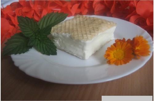 5. Hotovú stuhnutú zmrzlinu natrieme na spodnú oplátku a prikryjeme druhou.