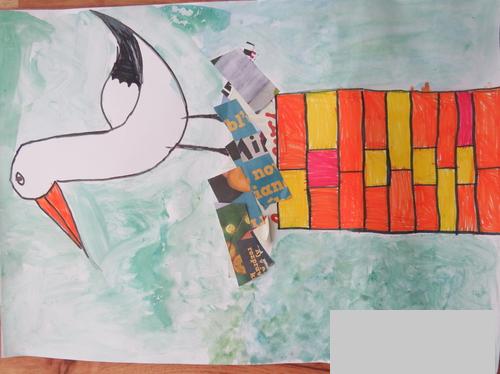 Bol raz jeden bocian Rišo, ktorý bol sám. Nemal žiadnu rodinu. Býval v starom hniezde. Raz stretol ďalšie vtáky. Leteli k nemu. Boli to bociany a leteli v kŕdli. Naháňal ich orol. Rišo ich chcel zachrániť, ale nedarilo sa mu. Orol ho nepustil. Rišo sa nevzdával. Zrazil orla na zem a zachránil vtáky. Rišo si našiel priateľku. Už nebol v hniezde sám.