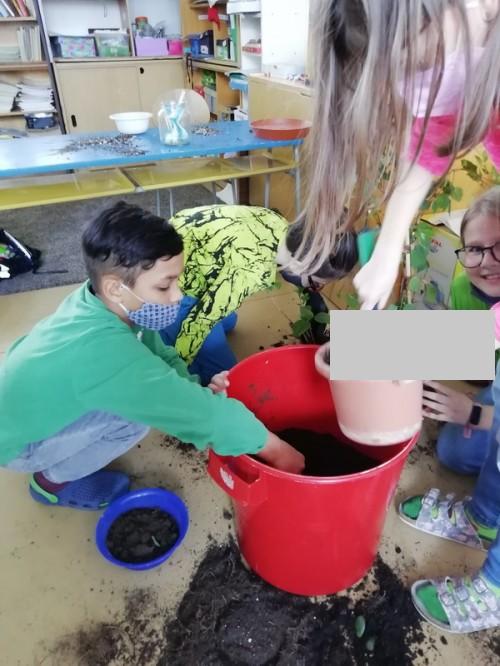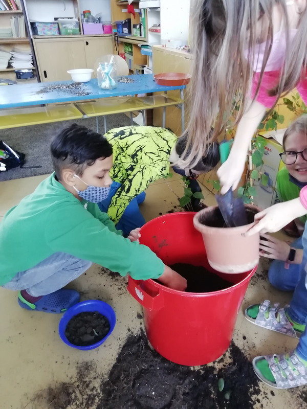 Aj napriek tomu sme my, vo štvrtok 22.4. venovali celý tento deň našej Zemi. Vyučovanie v triedach sme zamerali na ekoaktivity. Pripravili sme si celý rad aktivít k ochrane prírody a šetrnému prístupu k nej a nášmu životnému prostrediu. Spoznávali sme rastliny a živočíchy, pripomenuli sme si význam včiel v prírode, poznávali sme liečivé rastliny a ich účinky pre naše zdravie, nezabudli sme ani na význam recyklácie odpadov. Aby sa teória stala realitou vysievali a presádzali sme rastlinky do kvetináčov, pozbierali sme odpadky v areáli a okolí školy.
