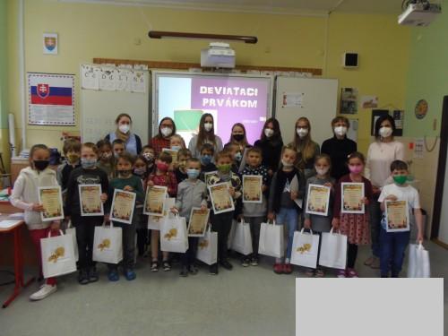 Dňa 13.4.2021 sa už tradične na našej škole konala akcia ,,Deviataci prvákom“. Za prítomnosti pozvanej pani riaditeľky PaedDr. Márie Slosiarikovej a obidvoch triednych pani učiteliek deviatakov, Mgr. Bukovčanovej a Mgr. Sklenkovej s triednou učiteľkou prvákov Mgr. Babiakovou.
