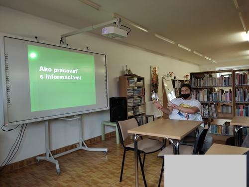 Pracovníčka knižnice všetkých oboznámila, ako fungujú jednotlivé knižnice na Slovensku, ako sa knihy triedia, čo všetko v knižnici môžeme nájsť, ako získavajú nové výtlačky, aké spoločenské akcie, besedy, súťaže organizujú, rovnako ako sa navzájom jednotlivé knižnice podporujú. Prezreli sme si všetky oddelenia, aj knižničné fondy, zistili sme, čo znamenajú číselné označenia na obaloch kníh a ako môžeme využívať študovňu. Taktiež sme sa dozvedeli, aké opatrenia sú zavedené v prípade straty knihy a ako najlepšie riešiť takúto situáciu. Niektorí žiaci využili šancu vytvoriť si čitateľsky preukaz priamo na mieste a zároveň si aj vypožičali knihy.