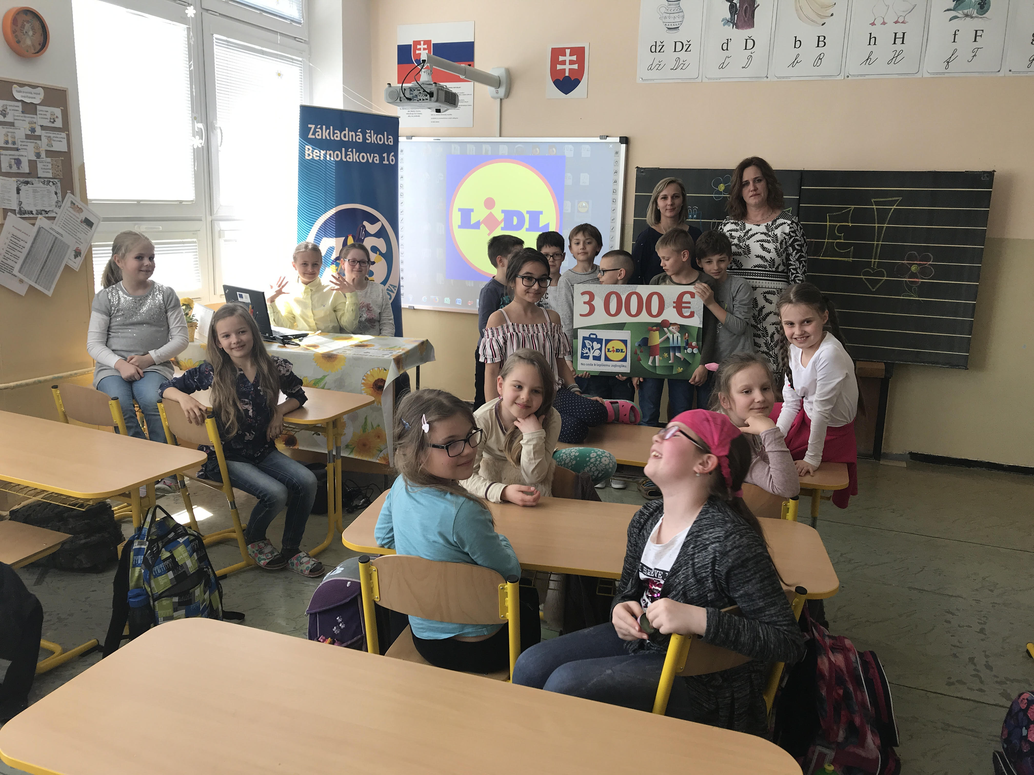 Po ukončení výzvy Lidl zakúpil dve interaktívne tabule a športové pomôcky v hodnote 3000 eur, z ktorých sa dnes môžu tešiť žiaci Základnej školy Bernolákova 16.