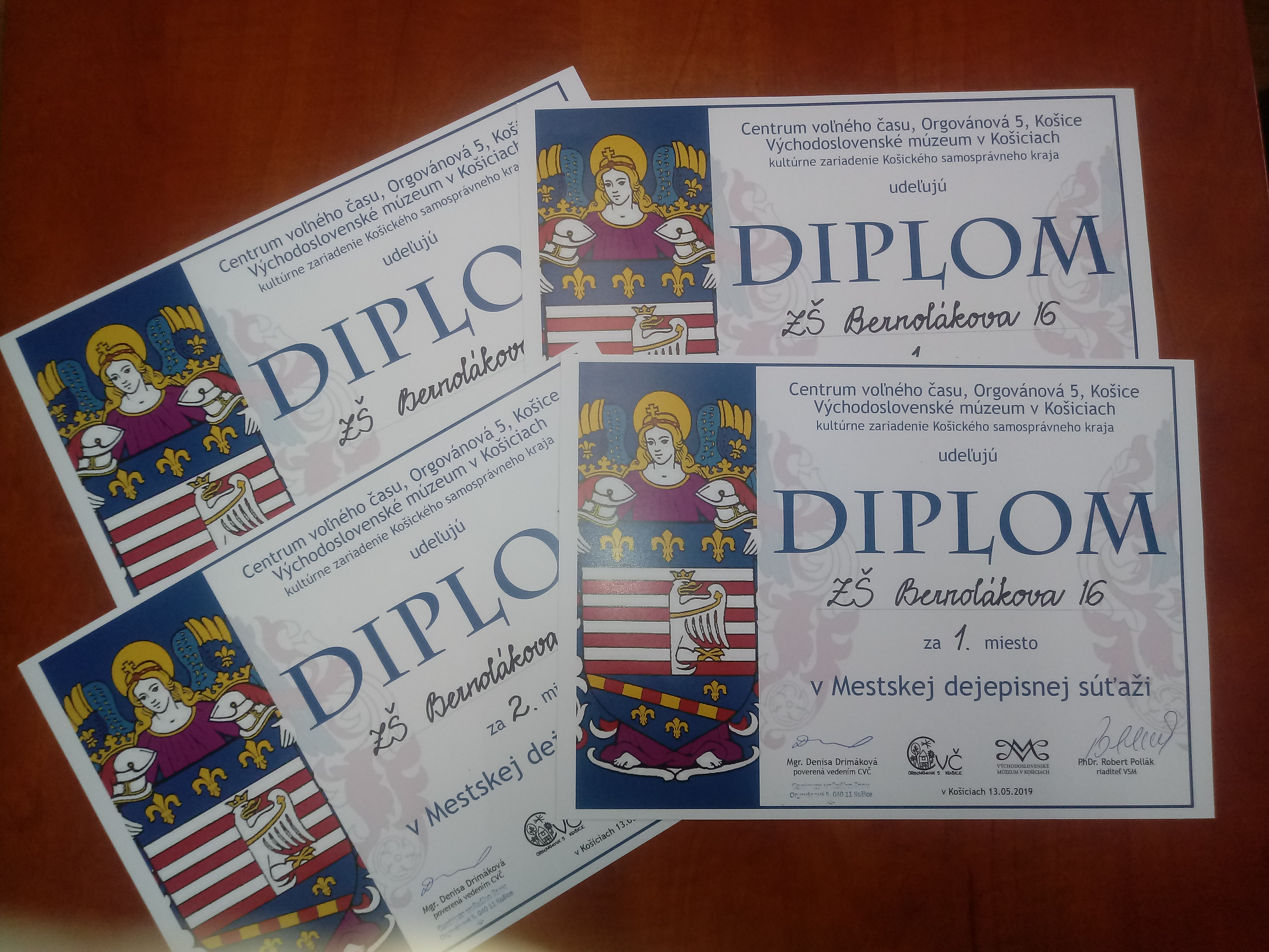 Dve družstvá piatakov (Klára Štecová 5.B, Soňa Kramárová 5.B, Lucia Levická 5.A, Viviána Popovičová 5.A, Jana Kaťuchová 5.A, Sofia Horovčáková 5.A) získali 1. miesto na celomestskej úrovni.